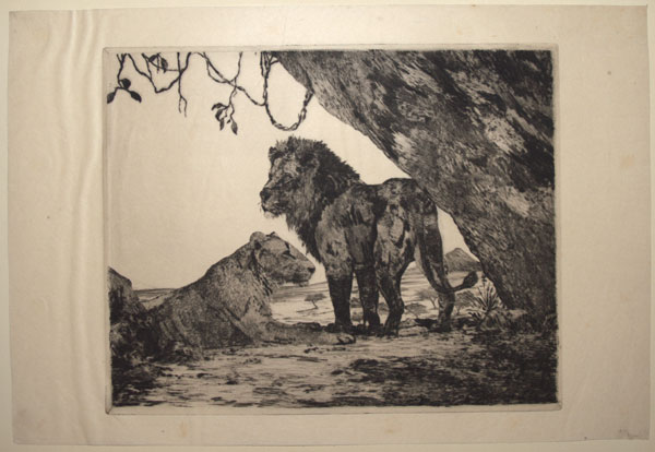 A lion and lioness sheltering under a rock by Arthur Radclyffe Dugmore (1870-1955), Welsh-born American naturalist and wildlife photographer, painter, print-maker and author.