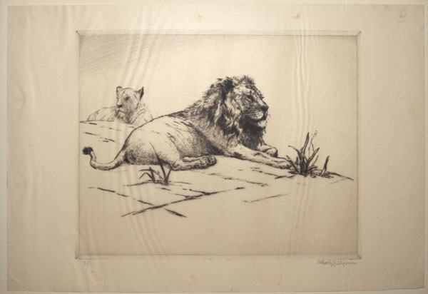 A remarkable scarce album of etchings of the plains animals. There are seven plates of elephants, three of lion, a rhinoceros, two of buffalo and three of antelope. Arthur Radclyffe Dugmore (1870-1955), Welsh-born American naturalist and wildlife photographer, painter, print-maker and author.