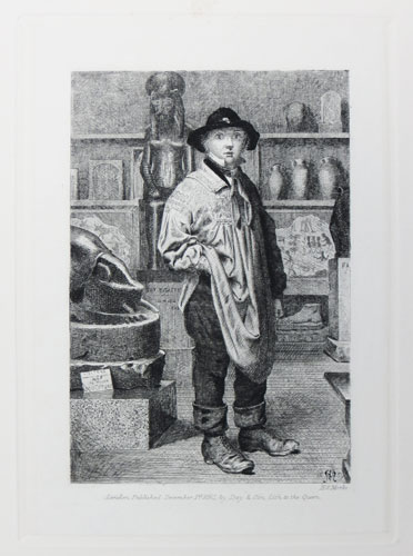 H.S. Marks. London, Published December 1st 1861 by Day & Son, Lith to the Queen. Etching on india, platemark 180 x 130mm (7 x 5"), with very large margins. Etching by painter Henry Stacy Marks (1829-98), plate 17 from Passages from 'Modern English Poets Illustrated by the Junior Etching Club' (1862). Marks first exhibited at the Royal Academy in 1853 and regularly exhibited there in the next two decades (mostly with Shakespearean or historical subjects). Family responsibilities forced him to take on additional work, including illustrations such as this, art criticism, and designs for porcelain, church and theatre interiors, and even Christmas cards! He was elected as an Academician in 1878.