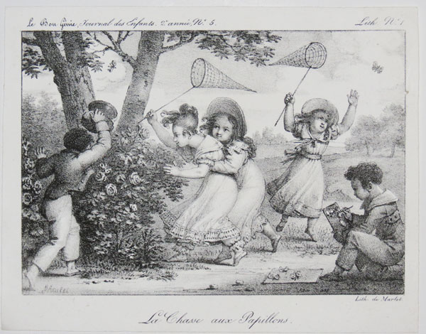 La Chasse aux Papillons. Le Bon Génie, Journal des Enfants. N.2 année, No.5. Lith. No.1.
