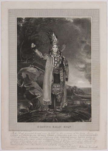 Edmund Kean Esq.r In the Dress presented to and worn by him on the Occasion of his being chosen a Chief and Prince of the Huron tribe of Indians by the name of Alanienouidet. To the Patentee, Committee, and Performers of the Theatre Royal Drury Lane... This Print is most respectfully dedicated by their obliged and ob.t Ser.t William Kenneth.