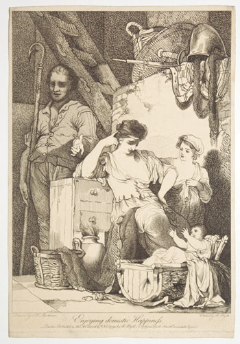An arresting scene of two people in restraints while two children cry by their side. This print was originally part of the 'British School II' album, which contained 170 prints published between 1713 and 1810. The purpose of the album is prefaced by two paragraphs that describe the role that the Royal Academy and its academicians have played in the development and promotion of British art.