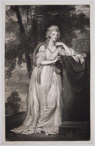 After the portrait by George Romney. She was also portrayed by Sir Joshua Reynolds. CS: 53 [state not listed but post 1791 state listed]; Ex Collection of the Late Hon. C. Lennox-Boyd