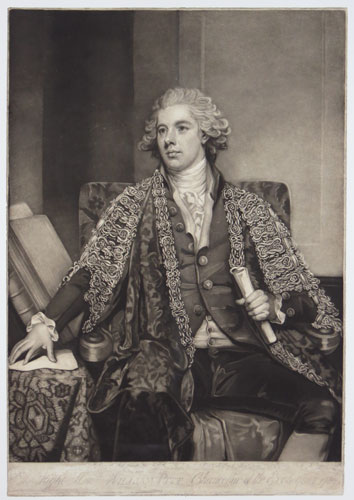 A portrait of William Pitt the Younger (1759-1806) dressed in his Chancellor's robes, after George Romney. Pitt served as Chancellor three times (1782-83, 1783-1801 & 1804-06), the last two terms while he was also Prime Minister. CS 63, i of ii.