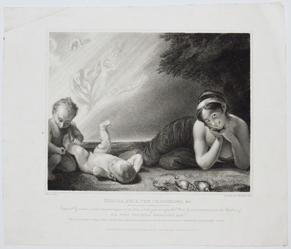 [Emma Hamilton] Titania, Puck, the Changeling, &c. (From Shakespear's Play of "Midsummer Night's Dream"). Engraved by Edward Scriven, Historical Engraver to the Prince of Wales from an unfinished Picture by George Romney, Esq. in the Posession of Sir John Fleming Leicesyer, Bar.t. Who by appropriating a Gallery exclusively to English Pictures has evinced a patriotic love for the Fine Arts of his Country, & to whom this plate is most respectfully inscribed.