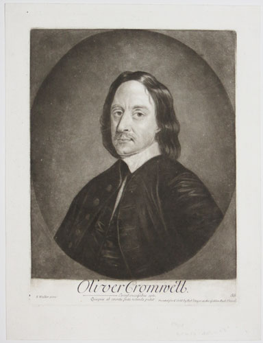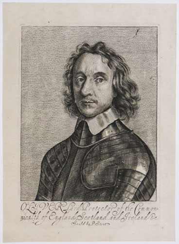 Oliver Cromwell (1599-1658), lord protector of England, Scotland and Ireland. Latin text from Ovid below which can be translated as 'Let him lack success, I wish, who thinks that the deed can be censured from its outcomes'. This plate originally showed Cromwell in armour as in most likenesses, but in this later impression a coat has been substituted in its place. O'D 65.