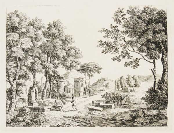A collection of etchings after Paul Sandby (1731-1809) and Jean Baptiste Chatelain (1710-58), published after Sandby's death. Six landscapes and a full-length portrait of a woman have no inscriptions; the other nine plates signed by Chatelain, suggesting the unsigned ones are after Sandby. The Chatelain plates include a pair 'Calm' and 'Storm', with the publication details of Robert Sayer, suggesting Richard Holmes Laurie was republishing plates dating back to c.1750.