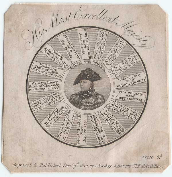 A miniature portrait of George III (1738-1829), within a circular frame with offshoots of his family coming out.