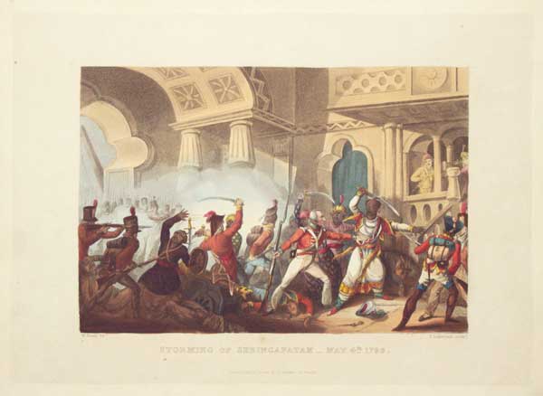 From, 'The Martial Achievements of Great Britain and Her Allies; From 1799 to 1815.' The siege of Seringapatam (5 April -4 May 1799) was the final confrontation of the Fourth Anglo-Mysore War between the British East India Company and the Kingdom of Mysore, led by Tipu Sultan.