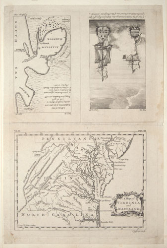A Map of Virginia and Maryland. A View of the Centurion, taking the Acapulco Ship, off Cape Espiritu Santo, on Samal one of the Philipine Islands. A Plan of the Harbour of Acapulco on the Coast of Mexico.