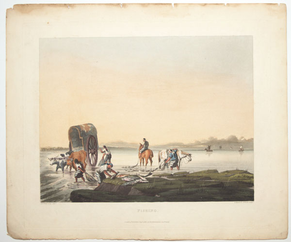In the river a cart pulled by oxen is being loaded with fish collected by two men on horses with a net to the right, and then gutted by a man in the middle. From Emeric Essex Vidal's ''Picturesque Illustrations of Buenos Ayres and Monte Video'', one of the earliest descriptions of Argentinian life. Born c. 1788, Vidal entered the Navy in 1808 and retired in 1862. He visited Buenos Aires and Montevideo twice at the end of 1816 (the year Argentina became independent), returning 1828-9. He was stationed on St Helena 1820-1, during Bonaparte's exile. Abbey Travel: 698.9. Vidal's text is available on Google Books.