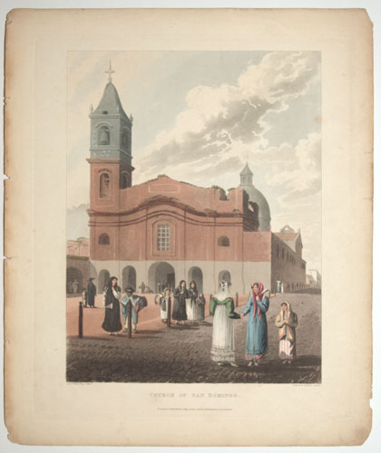 The Santo Domingo Convent Buenos Aires. The artist noted that it was ''in a state of disrepair, and has nothing noteworthy except for the colors and a fine organ''. From Emeric Essex Vidal's ''Picturesque Illustrations of Buenos Ayres and Monte Video'', one of the earliest descriptions of Argentinian life. Born c. 1788, Vidal entered the Navy in 1808 and retired in 1862. He visited Buenos Aires and Montevideo twice at the end of 1816 (the year Argentina became independent), returning 1828-9. He was stationed on St Helena 1820-1, during Bonaparte's exile. Abbey Travel: 698. Vidal's text is available on Google Books.