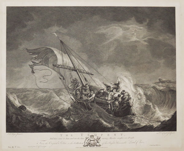 The Tempest. And they came to him, and awoke him, saying Master, master, we Perish. From the Original Picture, in the Collection of the Right Honourable Lord Clive. Size of Picture 4F, 0I by 5F, 5I in Length. St. Luke, Chap. VIII. Ver.24. Vol: II. No.63.