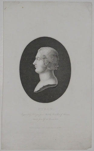 Byron. Engraved by R. Cooper from a Bust by Bertolini of Florence. Made from life at Pisa in 1822.