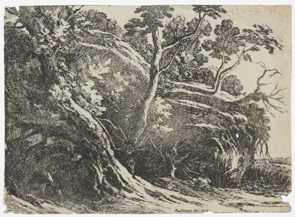 Early lithograph by Richard Cooper (1740-1814). The son of another engraver, Cooper worked for a time in Italy, where he befriended Alexander Runciman and developed a style of landscape painting similar to that of Runciman (he became known as the 'English Poussin'). After marrying in Edinburgh in 1777, Cooper settled in London around 1787, where he dedicated himself to drawing (he became drawing master at Eton) and printmaking. This lithograph was included in the first portfolio of artists' lithographs, 'Specimens of Polyauthography'. The new medium allowed artists to draw directly onto a prepared stone, allowing artists to make prints which arguably resembled drawings more than any earlier printmaking technique. Unlike many printmaking techniques, lithography required no special training as artists could work directly onto the plate and leave specialist printers to actually make the prints. For this reason many artists who were not trained printmakers (such as Géricault and Delacroix) often worked in lithography. Ex: collection of the Late Hon. C. Lennox-Boyd.