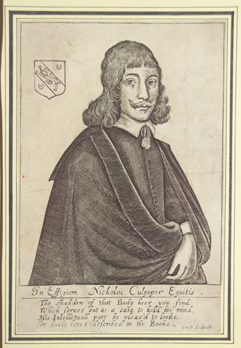 In Effigiem Nicholai Culpeper Equitis. / The shaddow of that Body heer you find / Which serves but as a case to hold his mind, / His Intellectuall part be pleas'd to looke / In lively lines described in the Booke.