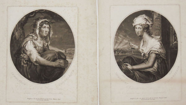 Pair of rare arce mezzotints. Each c.260 x 190mm (10¼ x 7½"). Both with old folds above publication line, 'Indolence' with more damage in margins.