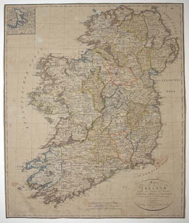 An uncommon German separate-issue map of Ireland, based on the work of English mapmakers Thomas Kitchin & Thomas Jefferys, and Daniel Beaufort, rector of Navan, County Meath, who published a map in 1792. An ink mss. on the reverse reads: 'Taken at the Battle of Vittoria 21st June 1813'. Once owned by Lieutenant-Colonel Arthur Kennedy 18th Hussars.