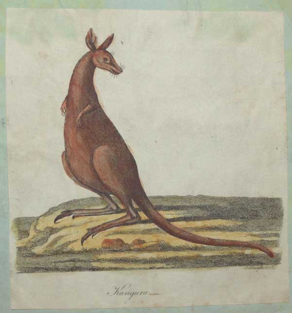 A portrait of a kangaroo, based on George Stubb's 1772 painting 'Kongouro from New Holland'. CLB: 384