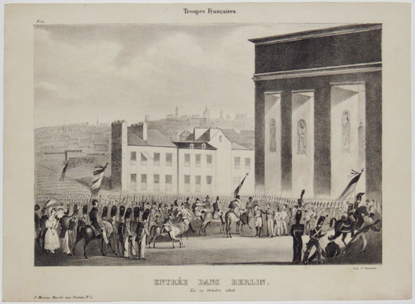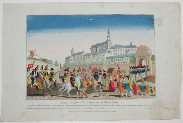 Entrée triomphante des Français dans la Ville de Berlin. Le 27 8bre 1806 Sa Majesté l'Empereur des Français et Roi d'Italie, a fait son entrée à Berlin à 3 heures après midi.