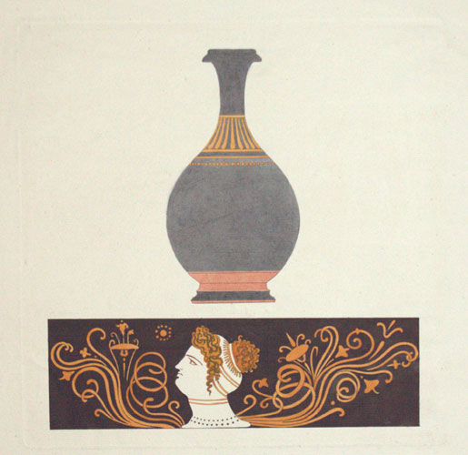 An illustration of a Greek lekythos, with a panel of a woman's head underneath. From the Airlie collection, Cortachy Castle.