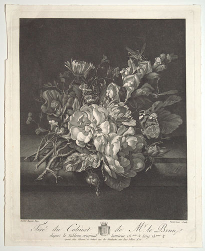 [Floral still life.] Tiré du Cabinet de M.r le Brun d'apres le Tableau original hauteur 16 pouc. ½ larg. 13 pouc. ½,