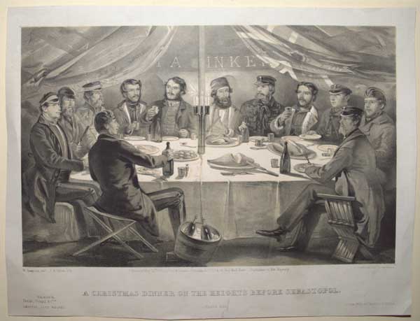 William Simpson's record of a dinner for officers of the Grenadier Guards at the Crimea, published in his ''Seat of War in the East''. From the left: Captain Sir Charles Russell, Baronet (winner of a VC); Captain Charles Turner; Captain Alexander Viscount Balgonie (died in the fighting); Captain Frederick Bathurst; Captain Edwyn Sherard Burnaby; Lieut-Colonel Charles Lindsay); Colonel Frederick William Hamilton; Lieut-Colonel Prince Edward of Saxe Weimar; Captain George Higginson (later Major General commanding the Brigade of Guards & centenarian); Lieut. Robert William Hamilton; Captain Henry William Verschoyle; and Captain Sir James Fergusson (later Governor of South Australia, New Zealand and Bombay), Simpson's original watercolour is in the British Museum (1935,0306.4)