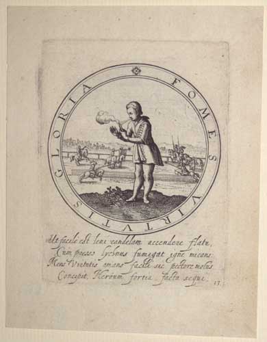 Fomes Virtutis Gloria. Ut facile est leni candelam accendeze flatu, Cum presso Lychnus fumigat ignae micans; Mens Virtutis amans facili sic pectore motus Concipit, Heroum fortia facta sequi. 13.