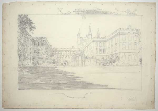 Pencil sketch on paper, sheet 390 x 555mm (15¼ x 21¾"), on Whatman paper watermarked with date 1901. Stitch holes around image.