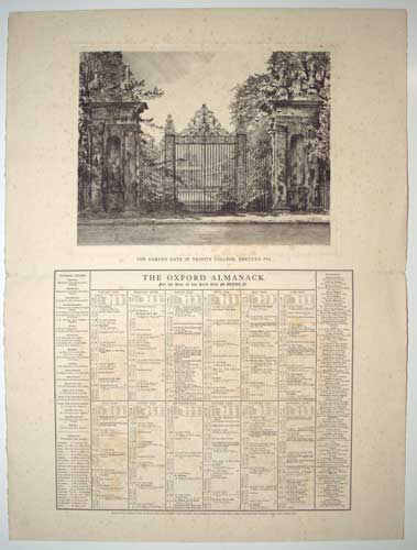The Garden Gate of Trinity College, Erected 1713. The Oxford Almanack for the Year of our Lord God M.DCCCC.II. [1902]
