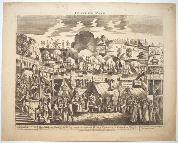[The Grand Jubilee] Jubilee Fair. This Fair and Naumachy or Sham Sea Fight in Hyde Park was in Honour of Peace. This Jubilee on Aug.t 1. 1814 was to Celebrate the return of Peace and the Centenary of the reign of the Illustrious House of Brunswick and to commemorate the glorious battle of the nile.