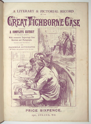 A Literary & Pictorial Record of the Great Tichborne Case: containing A Complete History of this cause célèbre, With numerous Engravings from Sketches and Photographs, Reprinted from the Graphic and Facsimile Autographs Of Letters, now published for the first time. Prince Sixpence.