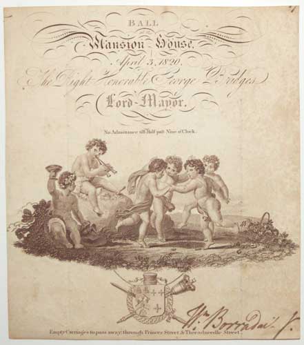 Ball at the Mansion House, April 3, 1820, The Right Honorable George Bridges, Lord Mayor.