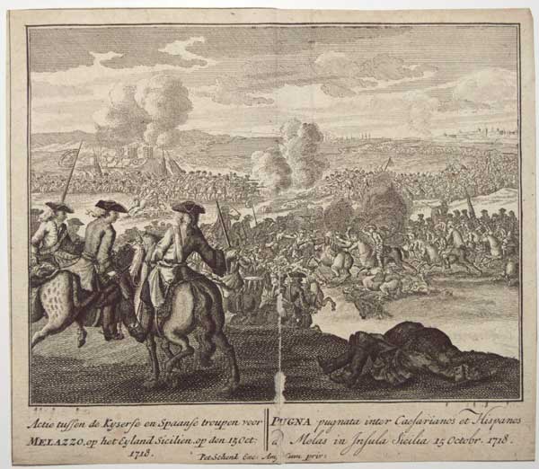 A scene of the Battle of Milazzo fought on 15 October 1713 between Spain and Austria during the War of the Quadruple Alliance (1718-1720).