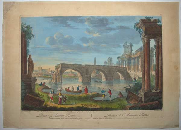 A composite view of the Tiber, with several ruined Roman buildings, including the Colosseum and the three arches of the Ponte Rotto. From a series of ten plates engraved by William Austin (c.1733-1820) after Giovanni Paolo Pannini (c.1691-1765). Ex: Collection of Edward Croft Murray.