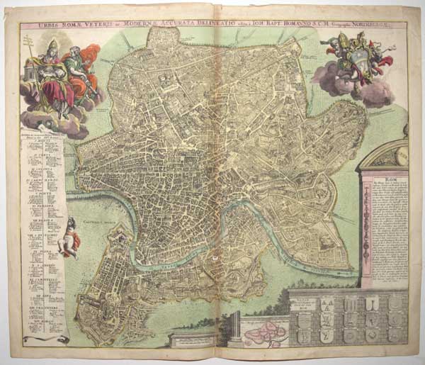 A detailed map of Ancient Rome decoratedwith figures representing the Catholic Church. Ex: Collection of Edward Croft Murray.