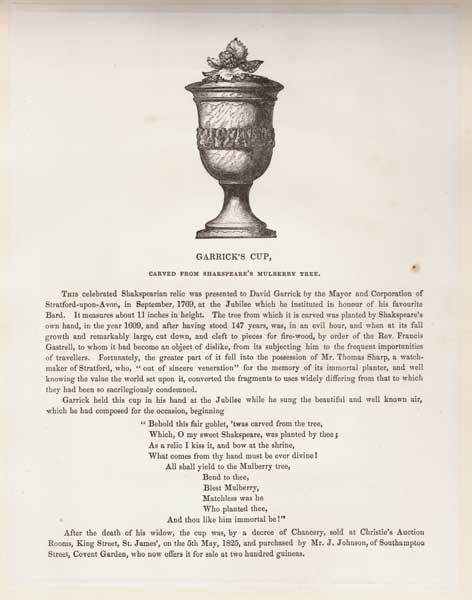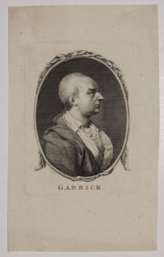 David Garrick (1717-1779), the English actor, playwright, theatre manager and producer who influenced nearly all aspects of theatricl practice throughout the 18th century. He was a pupil and friend of Dr Samuel Johnson. Harvard Voume II. p.84: 1.