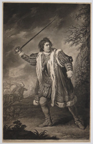 Richard The Third, To the right hon.ble Baroness Howe, This print representing Garrick in the character of Richard the III, in the memorable Battle of Bosworth Field, Is dedicated by her ladyships most obedient humble Servant, John Boultbee.