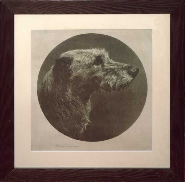 A circular image of a bloodhound head. As the plate was destroyed at the end of the printing this etching is most uncommon. From the celebrated collection of Bryan & Valerie Steele. See 20834 for unframed version.
