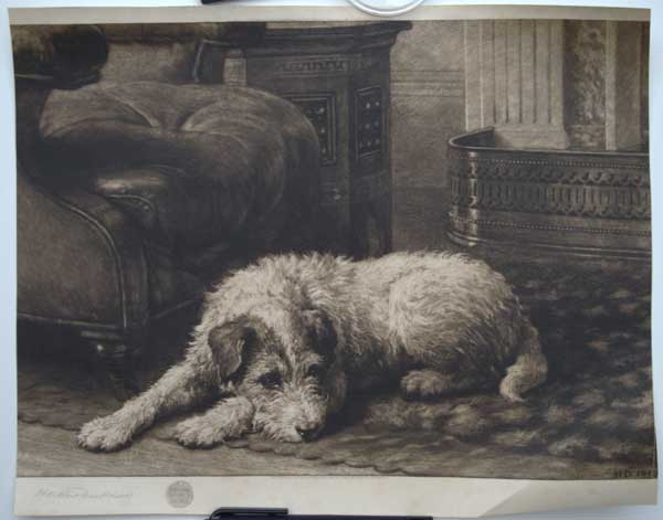 Herbert Thomas Dicksee (1862-1942) was an English painter who specialised in paintings of dogs and animals. He studied at the Slade School of Art and his first painting was exhibited in 1881. His paintings were usually done from life; he kept numerous dogs as pets and frequented London Zoo. His daughter, Dorothy was the executor of his will, which directed her to destroy most of the plates for his etchings. From the celebrated collection of Bryan & Valerie Steele.