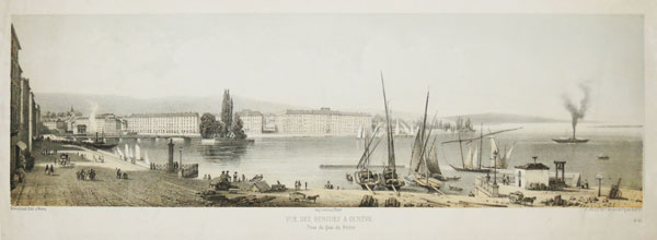 View of the Quai des Bergues, Geneva, Switzerland, by Jean Jacottet (b.1806), painter and lithographer.