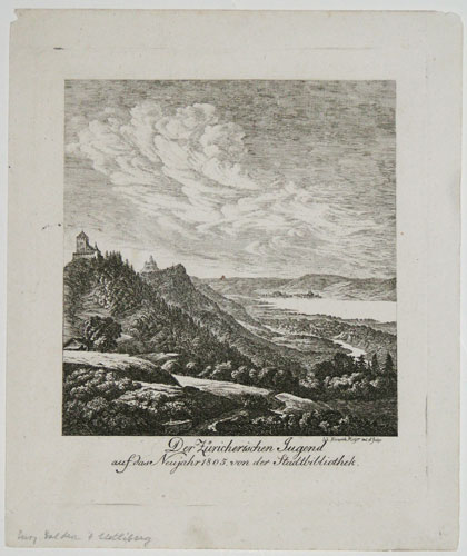 A view looking over to Zürich across Lake Zürich; dedicated to the young people of Zürich at the beginning of 1805.