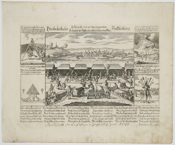 Pyrobolothesia. Bellica sic tormenta reguntur. So besteht der Stuken saz zuberschiessen einen Blaz. Stutstellung. Inder alten Krieges zeit hat man ganz mit andern Waf. Aüsgeubt bewaltes straffen...Und mit gegen ob uns walte, fern abwende krieges Noht. Und die ganz Artillereÿ Nur ein friedes zierdeseÿ.