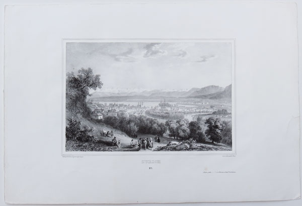 View of Zurich, the largest city in Switzerland, located at the north-western tip of Lake Zurich. From a topographical series, possibly 'Le Moyen Age pittoresque' 1837-39.
