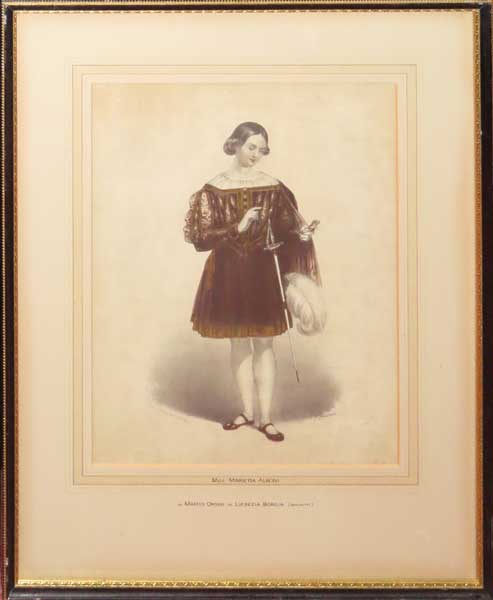 Marietta Alboni (1823-1894) was a renowned Italian contralto opera singer. Together with the charismatic Maria Malibran, she was considered the greatest deeper-voiced female singer of the nineteenth century. Rossini was taken by her abilities that he taught her the contralto roles in his operas. Her debut at the Teatro alla Scala took place in 1842 as Neocle in the Italian version of 'Le Siege de Corinthe', which was followed by roles in operas by Marliani, Donizetti, Salvi and Pacini. Whilst in London, 1848, Meyerbeer transposed the role of the page Urbain in 'Les Huguenots', from soprano to contralto and composed a new aria for her. Harvard: 4.