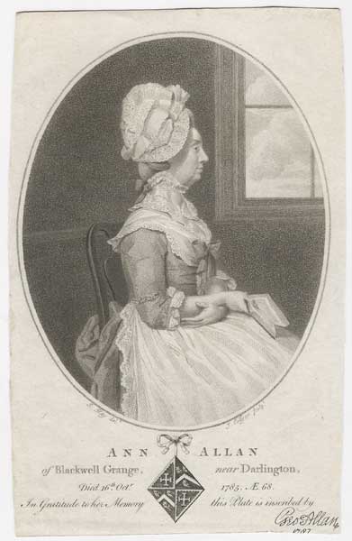 Ann Allan. Of Blackwell Grange, near Darlington, Died 16th Oct.r 1785, Æ 68.