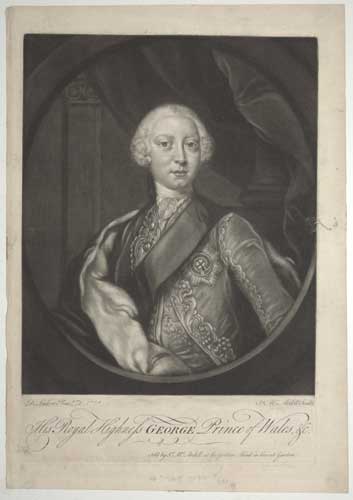 A half-length portrait in oval of George III, originally published in 1751, when he replaced his deceased father, Frederick, as Prince of Wales. CS: 84, unlisted later state. Goodwin: 21. Ex: Collection of The Hon. C. Lennox-Boyd.