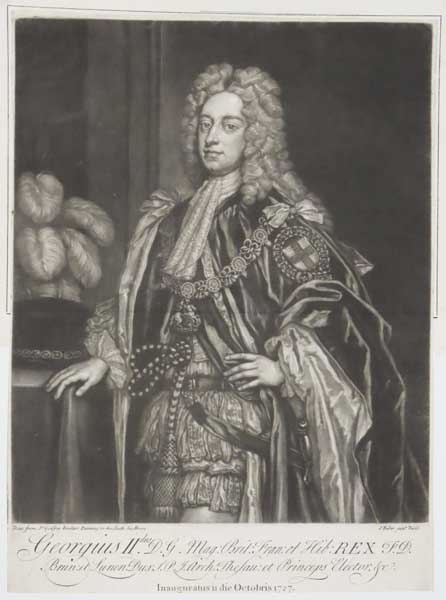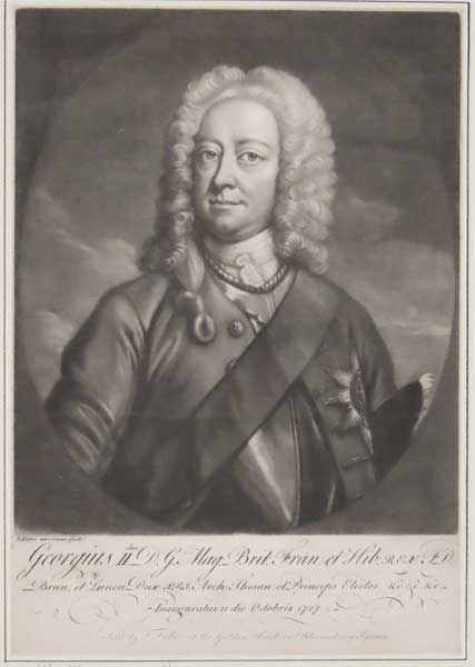 Georgius II.dus D.G. Mag: Brit: Fran: et Hib: Rex F.D. Brun: et Lunen: Dux S.R.J. Arch: Thesau: et Princeps Elector &c. Inauguratus II die Octobris 1727.
